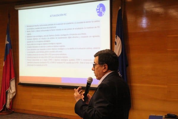 El miércoles 6 de diciembre en el auditorio Carlos Blin Arriagada, se llevó a cabo el encuentro, cuyo propósito fue dar a conocer y reflexionar junto a la comunidad académica, los principales cambios y actualizaciones que comenzarán a ser implementados en materia de tecnologías de gestión, acreditación institucional y actualizaciones al Plan Estratégico Corporativo.